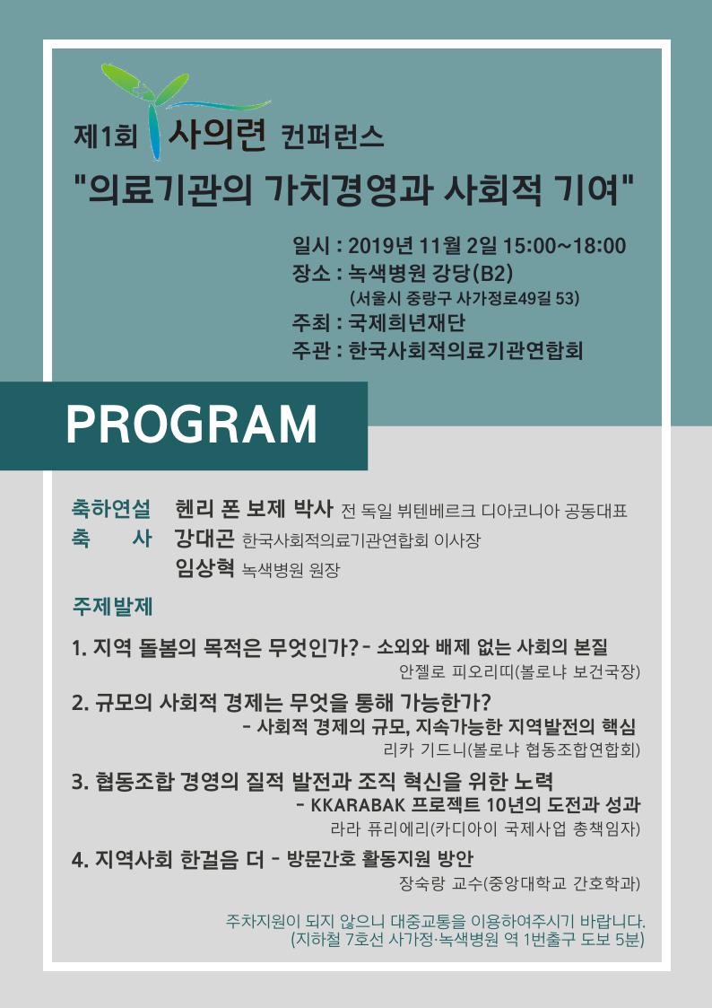 한국사회적의료기관연합회(사의련)는 주관단체로 함께합니다.