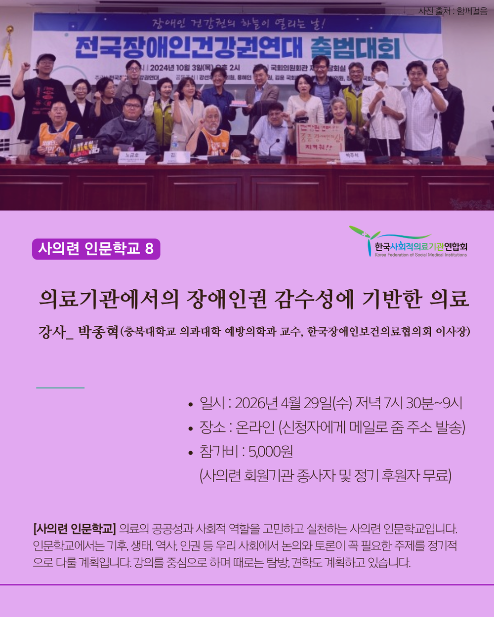 [사의련 인문학교8] 의료기관에서의 장애인권 감수성에 기반한 의료